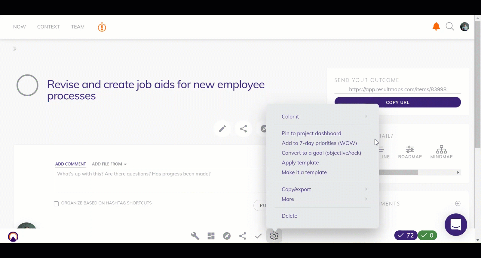 Pin anything to your project dashboard with a few clicks. That means that you don’t have to worry about whether you call something a task, or action item, or a check list. And you don’t have to wait to plan perfectly. You can get started and rearrange or rework things as you learn more. And that really means you spend more time getting the results that matter and avoid analysis paralysis.